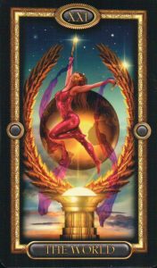 Med värden som sista kort visar det på att du har kontroll över livet, du når total helhet och en förståelse över hela sambandet med att leva. Oanade förmågor kan du blomstra upp. Du kan se din utveckling på ett nytt sätt och känna en stark motivation till att välja vilket liv du vill leva och hur du vill leva det. Detta kort är kortet för vidgade vyer och oändliga möjligheter. Detta är det sista kortet i stora arkanan. Det avslutar cirkeln som börjar med narrren, och du ser nu dig själv och värden som den är. Saker är i ordning för en ny början eller ett gynnsamt fullbordade av en fas i ditt liv. Nu faller harmoni in, det är nu hög tid att befria dig från det som du känner dig klar med känslomässigt ❤️ Detta kortet kommer som oftast med budskapet om nytt liv och ett löfte om att det nyvunna lyckan kommer håla i sig ❤️❤️